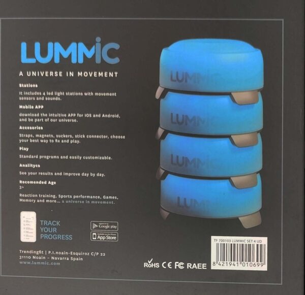 ست تمرینی LUMMIC شامل 4 چراغ LED هوشمند با سنسور حرکت و قابلیت اتصال به اپلیکیشن موبایل است. این مجموعه برای تمرین واکنش، سرعت، تمرکز و هماهنگی حرکتی طراحی شده و در تمرینات ورزشی، بازی، توانبخشی و سرگرمی کاربرد دارد. چراغها از طریق اپلیکیشن iOS و Android قابل کنترل و شخصیسازی بوده و امکان پیگیری پیشرفت تمرینی را فراهم میکنند.